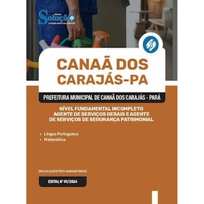A Apostila Concurso Prefeitura de Canaã dos Carajás - PA 2024 - Nível Fundamental Incompleto contempla as seguintes matérias: Língua Portuguesa Matemática