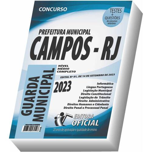 Cargo: GUARDA CIVIL MUNICIPAL Tipo: IMPRESSA Páginas: 442 Escolaridade: NÍVEL MÉDIO Órgão: MUNICÍPIO DE CAMPOS DOS GOYTACAZES/RJ - EDITAL DE CONCURSO PÚBLICO Nº 1, DE 14 DE SETEMBRO DE 2023