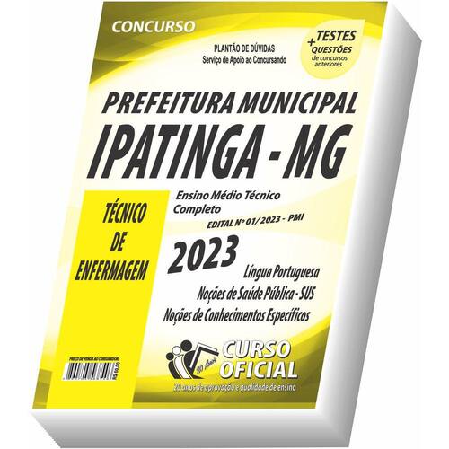 Cargo: TÉCNICO DE ENFERMAGEM Tipo: IMPRESSA Páginas: 252 Escolaridade: ENSINO MÉDIO TÉCNICO COMPLETO Órgão: PREFEITURA MUNICIPAL DE IPATINGA-MG - EDITAL DE CONCURSO PÚBLICO Nº 001/2023