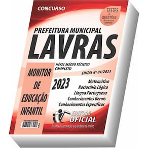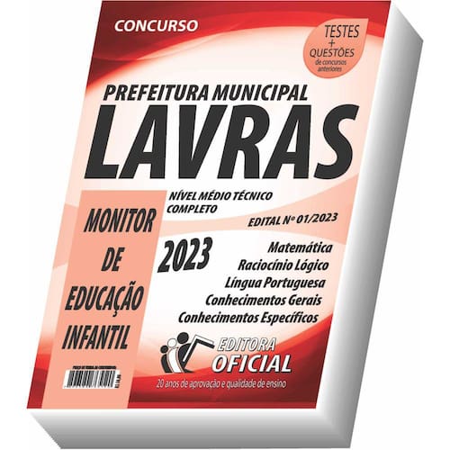 Cargo: MONITOR DE EDUCAÇÃO INFANTIL Tipo: IMPRESSA Páginas: 194 Escolaridade: Nível Médio/Técnico Órgão: PREFEITURA MUNICIPAL DE LAVRAS - MG - EDITAL Nº 01/2023