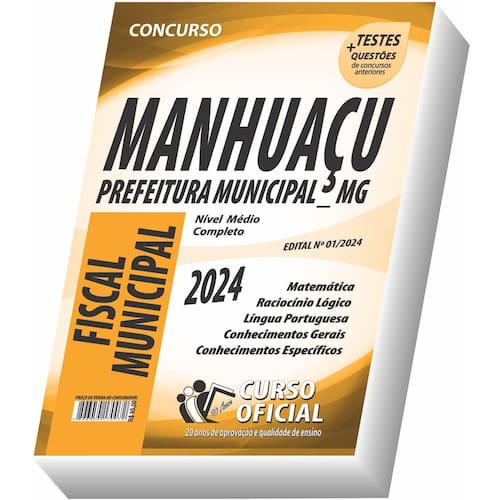 Edição impressa atualizada - elaborada por professores especializados em concursos públicos do curso oficial - são 23 anos de experiência e aprovação dedicados a você, . Cargo: fiscal municipal Tipo: impressa Páginas: 344 Escolaridade: nível médio Órgão: prefeitura municipal de manhuaçu - mg - edital nº 01/2024 Conteúdo do material: Matemática Raciocínio lógico Língua portuguesa Conhecimentos gerais Noções de direito administrativo Noções de direito tributário e financeiro Você receberá ainda: Testes, provas e questões de concursos anteriores; Atualizações, se houver alguma mudança no edital; Prova do último concurso; Edital do concurso. Marca: Não Informado