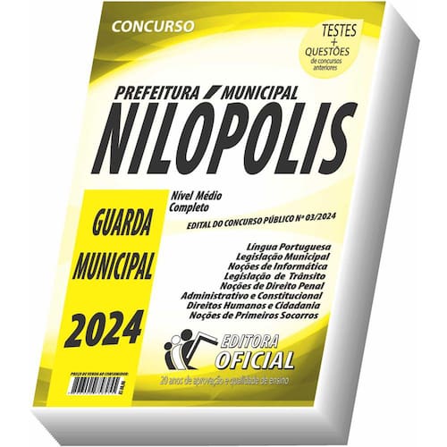 Cargo: GUARDA MUNICIPAL Tipo: IMPRESSA Páginas: 320 Escolaridade: NÍVEL MÉDIO COMPLETO Órgão: PREFEITURA MUNICIPAL DE NILÓPOLIS - Estado do Rio de Janeiro - EDITAL 03/2024
