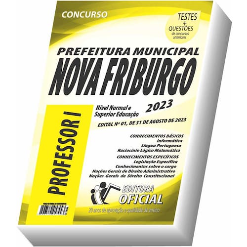 Cargo: Professor I Tipo: IMPRESSA Páginas: 556 Escolaridade: NÍVEL NORMAL E SUPERIOR – EDUCAÇÃO Órgão: PREFEITURA MUNICIPAL DE NOVA FRIBURGO/RJ - EDITAL Nº 01, DE 31 DE AGOSTO DE 2023