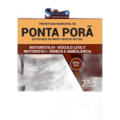 A Apostila para Motorista III Veículos Leve e Motorista I Ônibus e Ambulância do concurso Prefeitura de Ponta Porã - MS 2019 foi rigorosamente elaborada conforme o último edital publicado, o que torna o seu conteúdo completo e atualizado Marca: Editora Solucao