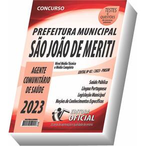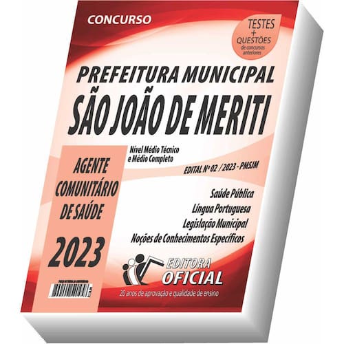 Cargo: AGENTE COMUNITÁRIO DE SAÚDE Tipo: IMPRESSA Páginas: 200 Escolaridade: NÍVEL MÉDIO COMPLETO E NÍVEL MÉDIO TÉCNICO Órgão: PREFEITURA MUNICIPAL DE SÃO JOÃO DE MERITI - Estado do Rio de Janeiro - CONCURSO PÚBLICO 02/2023