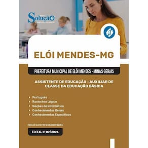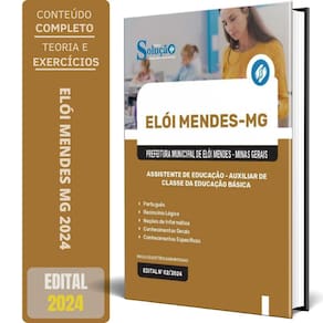Apostila Prefeitura de Elói Mendes MG 2024 - Assistente de Educação - Auxiliar de Classe da Educação Básica Apostila para Prefeitura de Elói Mendes - MG 2024 para o cargo de Assistente de Educação - Auxiliar de Classe da Educação Básica