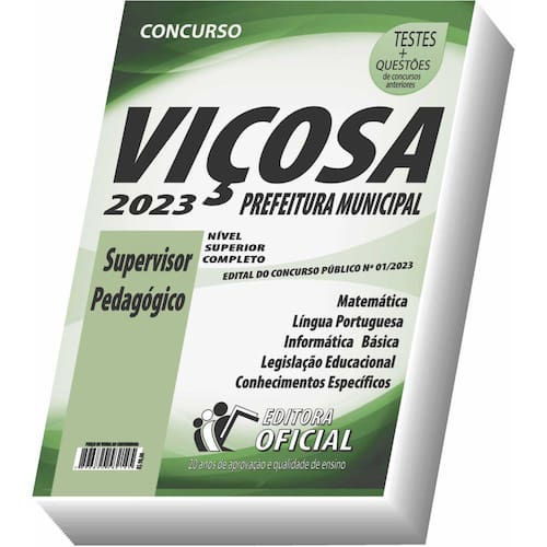 Cargo: Supervisor Pedagógico Tipo: IMPRESSA Páginas: 366 Escolaridade: Nível Superior Órgão: PREFEITURA MUNICIPAL DE VIÇOSA - EDITAL DO CONCURSO PÚBLICO Nº 01/2023