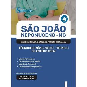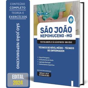 Apostila Prefeitura de São João Nepomuceno MG 2024 - Técnico de Nível Médio - Técnico de Enfermagem Apostila para Prefeitura de São João Nepomuceno - MG 2024 para o cargo de Técnico de Nível Médio - Técnico de Enfermagem