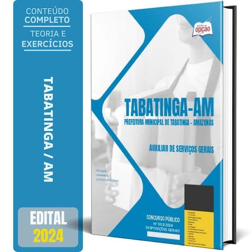 Apostila Prefeitura de Tabatinga AM 2024 - Auxiliar de Serviços Gerais Apostila para Prefeitura de Tabatinga - AM 2024 para o cargo de Auxiliar de Serviços Gerais