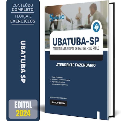 A Apostila Concurso Prefeitura de Ubatuba - SP 2024 - Atendente Fazendário contempla as seguintes matérias: