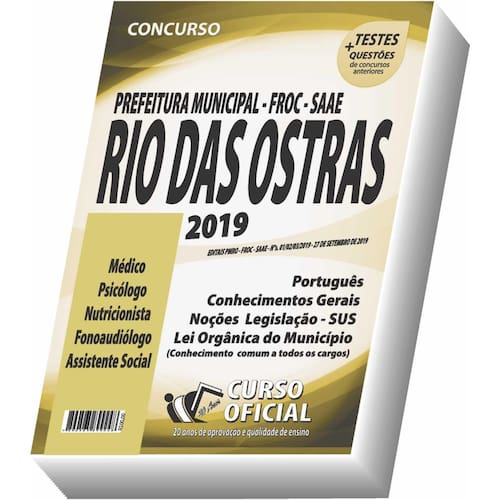 Edição impressa atualizada 2019 - elaborada por professores especializados em concursos públicos do curso oficial - são 20 anos de experiência e aprovação dedicados a você, . Cargos: médico - psicólogo - nutricionista - fonoaudiólogo - assistente social Tipo: impressa - física Páginas: 200 Edição: 2019 Escolaridade: ensino superior completo Órgão: prefeitura municipal de rio das ostras - rj - concurso público - editais nº 01/02/03/2019 Conteúdo do material: Português Noções sobre o sus Conhecimentos gerais Lei orgânica do município Você receberá ainda: Testes, provas e questões de concursos anteriores; Atualizações, se houver alguma mudança no edital; Prova do último concurso; Edital do concurso.
