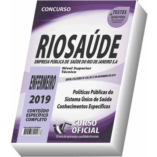 Edição impressa atualizada 2019 - elaborada por professores especializados em concursos públicos do curso oficial - são 20 anos de experiência e aprovação dedicados a você, . Cargo: enfermeiro Tipo: impressa Páginas: 206 Edição: 2019 Escolaridade: nível superior completo Órgão: riosaúde - empresa pública de saúde do rio de janeiro s.A - edital cvl/subsc nº 238, de 27 de novembro de 2019 Conteúdo do material: Políticas públicas do sistema único de saúde Conhecimentos específicos Você receberá ainda: Testes, provas e questões de concursos anteriores; Atualizações, se houver alguma mudança no edital; Prova do último concurso; Edital do concurso. Marca: Não Informado