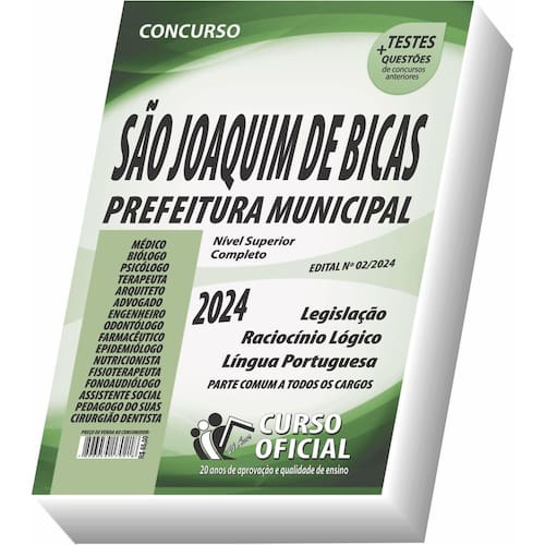 Edição impressa atualizada - elaborada por professores especializados em concursos públicos do curso oficial - são 23 anos de experiência e aprovação dedicados a você, . Cargos: terapeuta ocupacional - nutricionista - odontólogo - fisioterapeuta - fonoaudiólogo - pedagogo do suas - epidemiólogo - assistente social - cirurgião dentista - engenheiro - farmacêutico - psicólogo - advogado - arquiteto - biólogo - médico Tipo: impressa Páginas: 232 Escolaridade: nível superior Órgão: prefeitura municipal de são joaquim de bicas - edital nº 02/2024 Conteúdo do material: Legislação Língua portuguesa Raciocínio lógico parte comum a todos os cargos Você receberá ainda: Testes, provas e questões de concursos anteriores; Atualizações, se houver alguma mudança no edital; Prova do último concurso; Edital do concurso. Marca: Não Informado