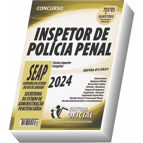 Edição impressa atualizada - elaborada por professores especializados em concursos públicos do curso oficial - são 23 anos de experiência e aprovação dedicados a você, . Cargo: inspetor de polícia penal Tipo: impressa Páginas: 626 Escolaridade: nível superior Órgão: governo do estado do rio de janeiro - secretaria de estado de administração penitenciária - edital 01/2024 Conteúdo do material: Informática Redação oficial Raciocínio lógico Direitos humanos Língua portuguesa Direito penal e processual penal Direito administrativo e constitucional Legislação especial e legislação específica Você receberá ainda: Testes, provas e questões de concursos anteriores; Atualizações, se houver alguma mudança no edital; Prova do último concurso; Edital do concurso. Marca: Não Informado