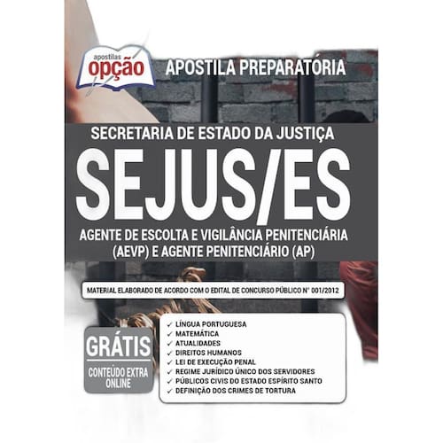 A Apostila Concurso SEJUS-ES 2020 - Agente de Escolta e Vigilância Penitenciária - AEVP e Agente Penitenciário - AP contempla as seguintes matérias: