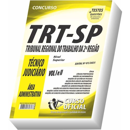 Edição impressa atualizada - elaborada por professores especializados em concursos públicos do curso oficial - são 25 anos de experiência e aprovação dedicados a você, . Cargo: técnico judiciário - área administrativa Tipo: impressa Páginas: 580 Escolaridade: nível superior Órgão: tribunal regional do trabalho da 2 região - edital 1/2025 Conteúdo do material: Código de ética Língua portuguesa Noções de informática Raciocínio lógico-matemático Noções de gestão de pessoas Noções de direito do trabalho Noções de administração pública Noções de direito processual do trabalho Noções sobre direito das pessoas com deficiência Noções de direito constitucional e administrativo Você receberá ainda: Testes, provas e questões de concursos anteriores; Atualizações, se houver alguma mudança no edital; Prova do último concurso; Edital do concurso. Marca: Não Informado