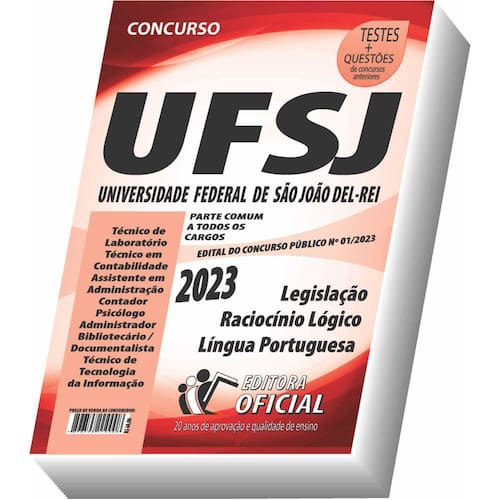 Cargos: Técnico de Laboratório - Técnico em Contabilidade - Assistente em Administração - Contador - Psicólogo - Administrador - Bibliotecário / Documentalista - Técnico de Tecnologia da Informação Tipo: IMPRESSA Páginas: 230 Órgão: UNIVERSIDADE FEDERAL DE SÃO JOÃO DEL-REI – UFSJ - EDITAL DO CONCURSO PÚBLICO Nº 01/2023