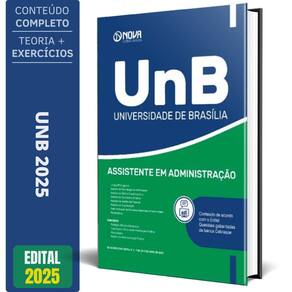 Apostila unb 2025 - assistente em administração Apostila para unb 2025 para o cargo de assistente em administração -004ab-25-unb-assistente-admin-imp Concurso unb 2025 Material elaborado de acordo com o edital de abril/2025 Você pode imaginar como a sua vida vai melhorar depois que você conquistar a aprovação neste concurso púbico Pois é, mais cedo ou mais tarde, você será aprovado a e se tornará um funcionário público e, isso lhe trará a tão sonhada estabilidade profissional e financeira que tantos almejam. Esta apostila lhe ajudará nesta caminhada, pois, ela é elaborada conforme o edital. Características do produto - formato: impressa papel a4 - marca: nova concursos - autor: professores especializados - modelo: livro brochura - medidas 21x29cm - quantidade de páginas: 412 - edição: abril/2025 A apostila concurso unb 2025 - assistente em administração contempla as seguintes matérias: Língua portuguesa Noções de tecnologia da informação Noções de direito constitucional Noções de orçamento público Noções de gestão de pessoas Noções de organização Administração de recursos materiais e patrimoniais Matemática Conteúdo complementar Redação discursiva e redação oficial Legislação e ética na administração pública Atualidades Noções de administração pública 412 páginas