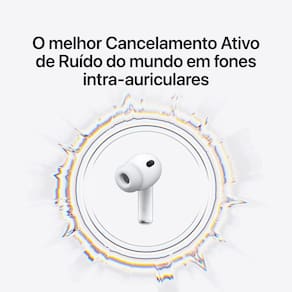 DESEMPENHO DE ÁUDIO REVOLUCIONÁRIO Os AirPods Pro 3 oferecem uma experiência de áudio tridimensional de tirar o fôlego. A nova arquitetura acústica transforma os graves, traz mais clareza para você ouvir cada instrumento e deixa os vocais com uma profundidade incrível.