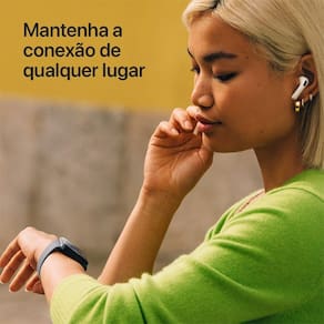 MANTENHA A CONEXÃO Envie mensagens, atenda chamadas, ouça música e podcasts, use a Siri e receba notificações. O SE 3 (GPS) usa seu iPhone ou Wi-Fi para manter a conexão em qualquer lugar.