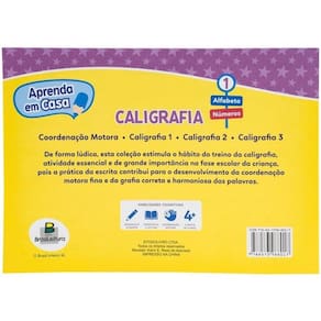 A caligrafia tem sua importância na fase escolar da criança, pois, a prática da escrita contribui para o desenvolvimento da coordenação motora fina, adquirindo habilidades que auxiliam na escrita correta das palavras, e também na forma e contorno das letras. Esta coleção apresenta exercícios lúdicos, que procuram estimular o hábito de escrever as letras e sinais de maneira divertida e harmoniosa.