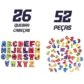 Brinquedo Educativo Pedagógico Aprendendo o ABC traz um maneira criativa e divertida de aprender o alfabeto, ao lado da letra de forma maiúscula e minúscula consta uma imagem que associa a letra ao nome, auxilia a criança ao processo de alfabetização e concentração.