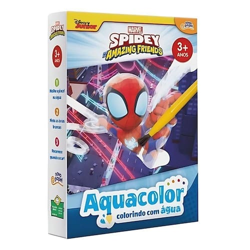 Aquacolor C/ Pincel Spidey - Toyster Unica Aquacolor C/ Pincel Spidey - Toyster Descubra a magia do conjunto de colorir Aquacolor Spidey, uma maneira encantadora e educativa para as crianças explorarem sua criatividade. Este inovador conjunto permite que os pequenos artistas aprendam a colorir desenhos do Mickey e seus amigos de forma divertida e ilimitada. Basta molhar o pincel em água e passá-lo sobre as áreas brancas do desenho para que as cores vibrantes se revelem instantaneamente, como em um passe de mágica! E o mais incrível é que, após a diversão, as cores desaparecem ao secar, permitindo que a brincadeira recomece quantas vezes quiser. Incluso no kit um pincel especial, perfeito para mãos pequenas, tornando o processo simples e acessível: 1. Molhe o pincel na água, 2. Pinte as áreas brancas, e 3. Recomece a diversão quando o desenho secar. Este produto não apenas entretém, mas também estimula o desenvolvimento das habilidades motoras finas e a criatividade das crianças, proporcionando horas de diversão educativa e sem bagunça. Código: 102778 Dimensões aprox. do produto em cm: 4x14x20 Peso liq. Aproximado do produto na embalagem: 88g Referência do modelo:8065 Certificado Inmetro: 000352/2022 Conteúdo da embalagem: 01 kit pintura aquacolor Idade recomendada: A partir de 3 anos Garantia: 90 dias contra defeitos de fabricação pelo fabricante. Imagens meramente ilustrativas. As cores e tonalidades podem variar. Gênero - Meninas Meninos Unissex Idade - 3 anos 4 anos 5 anos 6 anos 7 anos 8 Anos Personagens - Spidey and His Amazing Friends Tipo - Mesa de Atividades