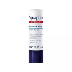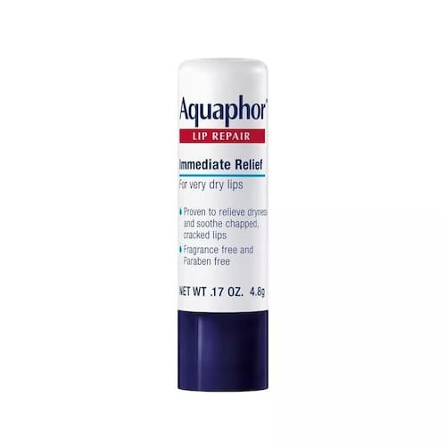Aquaphor Lip Repair Stick alivia imediatamente o ressecamento e acalma os lábios rachados e rachados.