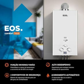 O Aquecedor de Água a Gás EOS 16 Litros (Gás Natural) combina tecnologia, eficiência e segurança para oferecer água quente de forma econômica e confiável. Seu design moderno e funcional se adapta a diversos ambientes, enquanto a função inverno e verão otimiza o consumo de gás e proporciona conforto térmico o ano todo.