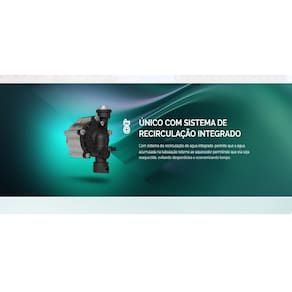 Com sistema de recirculação de água integrado. permite que a água acumulada na tubulação retorne ao aquecedor permitindo que ela seja reaquecida, evitando desperdícios e economizando tempo.