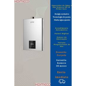 Aquecedor de Água a Gás Komeco GN 16 Litros Prime - Inox