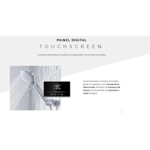 O painel digital touch screen, trás um visual moderno e proporciona controle completo da temperatura da água. Ícones animados mostram funções gerais da máquina como o acendimento das chamas, vazão da água, etc.