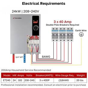 O Aquecedor de Água Elétrico de Passagem Thermomate ET240 é um equipamento de instalação residencial desenvolvido para atender casas de maior porte, com uso simultâneo em múltiplos pontos de consumo, como chuveiros, banheiras, pias e cozinha. Com potência de 24kW e tecnologia de automodulação, o aquecimento ocorre sob demanda, ativando o sistema apenas quando há fluxo de água detectado, sem necessidade de reservatório.