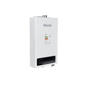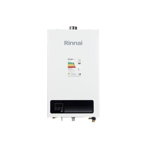 E15 Vazão 15 l/min. Glp e Gn Garantia de 3 anos Exaustão forçada Chama auto modulante Chaminé Ø 60 Controle digital com auto diagnóstico Bivolt Automático Dimensionamento 1 ducha 8l/min 2 duchas 8l/min 1 ducha 10l/min 1 ducha 15l/min Especificações técnicas Dimensões mm AxLxP 590 x 350 x 145 Tipo de gás Glp Gn Potência Nominal Condição Padrão 21.000 kcal/h 21.000 kcal/h Consumo Máximo de Gás 1,77 Kg/h 2,20 m³/h Vazão aproximada de Água 20º com misturador 15 l/min 15 l/min Rendimento % 86 % 86 % Diâmetro da Chaminé 60 mm Exaustão Forçada Classificação Pbe A A Tensão de Alimentação Bivolt Automático Para que ocorra o perfeito funcionamento do seu aquecedor Rinnai, é necessário que a pressão manométrica da água seja no mínimo igual ou superior a 10 m.C.A. metros de coluna d'água . Caso a sua residência não possua a pressão mínima de água necessária, recomendamos o uso de pressurizador de água. A instalação do seu aquecedor deverá ser feita por Instalador Autorizado Rinnai, para efetivar a garantia do produto. O valor da instalação não está incluso no preço do produto. Não esqueça de verificar o tipo de gás: Gn Gás Natural ou Glp Gás de Botijão . Recomendamos duchas com vazão máxima de 8 l/min. Fotos Ilustrativas. Os produtos e informações técnicas estão sujeitos a alterações sem prévio aviso. Tipo de Gás: Gn Gás Natural Ean: 7896576407045