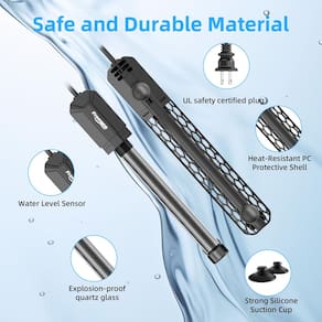 Características: Temperatura ajustável: 18-35 °C Seguro: o aquecedor desliga automaticamente e para de aquecer quando a temperatura da água excede o nível predefinido ou se ficar exposta ao ar. Ele exibirá um código de erro até que a temperatura caia abaixo do limite predefinido ou o aquecedor esteja totalmente submerso novamente. Códigos de erro: E1 – fora de água; E2 – falha mecânica. Esta proteção multicamadas garante que você nunca precise se preocupar com "peixe cozido"! Durável: Feito de vidro de quartzo à prova de explosão, este aquecedor submersível utiliza fio de aquecimento de níquel-cromo resistente a altas temperaturas e areia de quartzo para condução de calor eficiente, proporcionando aquecimento rápido de água e desempenho duradouro. A estrutura preta durável, feita de material de policarbonato, oferece resistência ao calor superior ao ABS regular, protegendo seus peixes, vida aquática e você mesmo de queimaduras. Especificações: Modelo: aquecedor de aquário 120 galões Potência: 500W Tensão: 110-120V/60HZ Tamanho do aquecedor: 31 x 4 x 3 cm Comprimento do cabo: 2,5 m Aplicação: 75 a 120 galões A embalagem inclui: 1 aquecedor de aquário. 1 adesivo de termômetro. 2 ventosas. Manutenção: Cuidados: 1. A parte de aquecimento deve ser totalmente submersa na água para evitar queimaduras a seco, caso contrário, causará danos ao aquecedor do tanque de peixes. 2. Se você precisar trocar a água, desligue a energia, deixe o aquecedor esfriar por mais de 20 minutos, espere que esfrie completamente antes de retirá-lo. - ?Aquecedor de aquário de 500 watts?: Este aquecedor de aquário de 500 W é ideal para aquários de água salgada ou de água doce de 75 a 120 galões. Ele mede 31 cm de comprimento, funciona em 110-120 V e vem com um cabo de alimentação de 2,5 m. Consulte nossa tabela de tamanhos para escolher a potência correta para o seu aquário. - ?Superaquecimento e proteção fora da água?: O aquecedor desliga automaticamente e para de aquecer quando a temperatura da água excede o nível predefinido ou se fica exposto ao ar. Ele exibirá um código de erro até que a temperatura caia abaixo do limite predefinido ou o aquecedor esteja totalmente submerso novamente. Códigos de erro: E1 – fora de água; E2 – falha mecânica. Esta proteção multicamadas garante que você nunca precise se preocupar com "peixe cozido"! - ?Controlador digital de LED?: Faixa de temperatura ajustável: 17.8 °C a 35.0 °C, com uma precisão de ± 1°F, você pode facilmente ajustar a temperatura usando o controle externo sem tocar na água. A tela LED exibe a temperatura atual da água, temperatura predefinida e um aviso de desligamento automático. É simples e fácil de usar! - ?Aquecedor de aquário de vidro de quartzo à prova de explosão?: Feito de vidro de quartzo à prova de explosão, este aquecedor submersível utiliza fio de aquecimento de níquel-cromo resistente a altas temperaturas e areia de quartzo para condução de calor eficiente, proporcionando aquecimento rápido de água e desempenho duradouro. A estrutura preta durável, feita de material de policarbonato, oferece resistência ao calor superior ao ABS regular, protegendo seus peixes, vida aquática e você mesmo de queimaduras. - ?Totalmente equipado com garantia?: Este aquecedor de aquário tem tudo o que você precisa: 1 aquecedor, 1 controlador, 2 ventosas, 1 tira de termômetro de cortesia e 1 manual de instruções (sem garantia de versão em português). Também inclui uma garantia de 12 meses para sua tranquilidade.