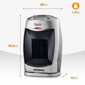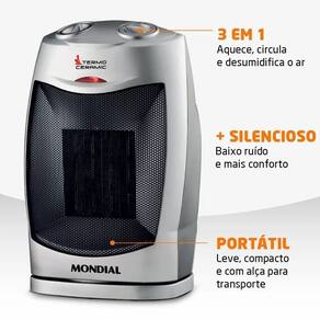 Aquecedor de ar termo ceramic a-05 127v DescriçãoContém:01 aquecedor de ar termo ceramic a-05 127v O aquecedor de ambientes termo ceramic a-05 da mondial é 3 em 1: ele aquece, circula e desumidifica o ar. O aparelho tem 2 níveis de aquecimento, é leve e portátil, e você pode transportá-lo entre os cômodos com facilidade. Além de ser mais silencioso e proporcionar um ambiente tranquilo e confortável. Além de promover o aquecimento, o a-05 circula e desumidifica o ar do ambiente, garantindo um cômodo quentinho e confortável. Níveis de aquecimento: Com o controle de temperatura por termostato, você pode selecionar entre 2 níveis de aquecimento e ainda a função circular, com apenas circulação de ar. Escolha de acordo com sua preferência Resistência de cerâmica: O aparelho aquece de forma rápida e eficiente. Mais segurança: Equipado com sistema de desligamento automático em caso de queda. Garantia de mais segurança e proteção para a sua família Mais silencioso: Aquecimento com baixo ruído, proporcionando noites tranquilas e agradáveis. Portátil: leve, compacto e com alça para transporte. Facilidade de levar seu aquecedor para qualquer cômodo