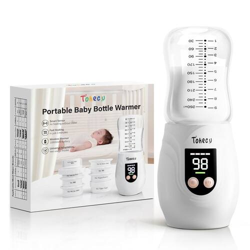 Aquecedor de mamadeira portátil para viagem, aquecedor de mamadeira para leite e leite materno com mamadeira de vidro, 8 adaptadores para Dr.Brown's, Medela, MAM, Philips AVENT, NUK, Pigeon, Evenflo, Tommee Tippee, Como Tomo, Boon - Diretamente utilizável e compatível: vem com 1 garrafa de vidro e 8 adaptadores, o vidro é melhor para aquecimento do que o plástico. A garrafa de vidro pode ser conectada diretamente e os adaptadores são compatíveis com várias marcas de gargalos, como 40 mm (Dr. Brown's, Medela), 50 mm (MAM, Philips AVENT, Dr. Brown's, NUK, Pigeon, Evenflo), 60 mm (Tommee Tippee), 70 mm (Como Tomo, Boon) - Aquecimento rápido e mantém aquecido: o aquecedor de mamadeira pode aquecer até 113 g de leite materno em temperatura normal a 37 °C em apenas 2 minutos. Existem 5 configurações de temperatura (de 36 °C a 50 °C). A sonda de temperatura mede diretamente a água, ela mudará para o modo de manter quente com um bipe suave quando atingir a temperatura definida, o que permite que você libere mais energia para cuidar do bebê - Material à prova de vazamento e seguro: design selado de camada dupla, juntamente com duas vedações de anel de vedação no aquecedor de garrafas e adaptadores. O número de roscas é aumentado e o espaçamento da rosca é reduzido, quando o anel de vedação é bem ajustado, pode efetivamente evitar vazamentos. Cada adaptador também é equipado com um anel de silicone de grau alimentício sobressalente, garantindo a segurança e a saúde do seu bebê - Sem fio e recarregável: o aquecedor de garrafas de viagem está equipado com uma bateria grande de 10.000 mAh, totalmente carregada em quatro horas e o indicador de energia não está mais piscando. Pode aquecer 113 g de água em temperatura ambiente a 37 °C cerca de 10 a 20 vezes. Ao contrário do aquecedor de mamadeira tradicional, você não precisa procurar tomadas enquanto estiver em movimento, ideal para viagens e uso de bolsas de fraldas - Fácil de limpar e usar: aquecendo a água com o aquecedor de garrafas e depois adicione a fórmula, você terá menos limpeza. Depois de fechar a porta de carregamento, ela pode ser facilmente limpa lavando ou limpando. Fácil de usar com apenas um botão de energia e um botão de controle de temperatura. E pode evitar queimaduras a seco quando não há água. É definitivamente uma virada de jogo quando você está fora