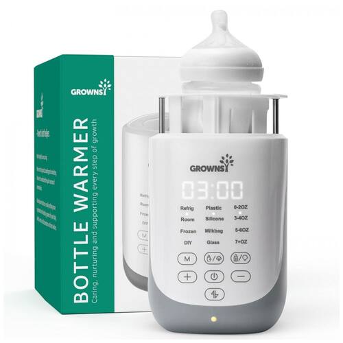 Diga adeus ao antigo aquecedor de mamadeira que nunca atinge a temperatura certa. Apresentamos o aquecedor de mamadeira patenteado GROWNSY, que eleva automaticamente a mamadeira após o aquecimento, garantindo sempre a temperatura ideal e eliminando as suposições. Aquece 120ml de leite em 25 minutos, preservando os nutrientes com tecnologia suave de banho-maria que evita o superaquecimento, favorecendo a digestão e crescimento do seu bebê. Possui função de manter aquecido por 24 horas, perfeito para alimentações noturnas e conforto imediato do bebê. Aquecimento Rápido, Descongelamento Suave, Manter Aquecido por 24 horas, Vaporização, Aquecimento de Alimentos, Elevação Inteligente, Temporizador, Luz Noturna, Cesto Antiescaldo e Função de Memória. Compatível com todas as marcas de mamadeiras e capaz de aquecer todos os tipos de alimentos para bebês. Inicie em apenas três passos e conclua o processo de aquecimento do leite em 35 minutos através de um aquecimento em banho-maria. A função de memória simplifica o início, reduzindo a operação de três etapas para um único botão. O aquecedor de mamadeira GROWNSY foi escolhido por mais de 9 milhões de pais. Com nossa missão de cuidar e nutrir cada etapa do crescimento, continuamos a apoiar mais famílias. Também é um ótimo presente de chá de bebê para novas mães entre parentes, amigos e vizinhos.