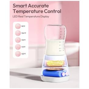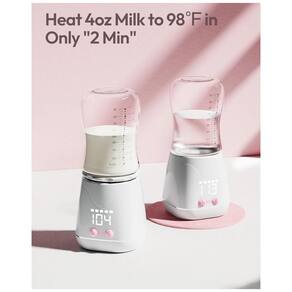 Aquecimento rápido e controle preciso de temperatura: Este dispositivo bacana pode aquecer 118.29 ml de leite a 37C em apenas 2 minutos. Ele oferece cinco configurações de temperatura regularmente ajustáveis 37C, 40C, 43.3C, 45C, 50C graças à avançada tecnologia de aquecimento uniforme e sondas externas com detecção de temperatura para controle preciso. Você pode facilmente atingir a temperatura perfeita do leite para o seu bebê.