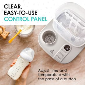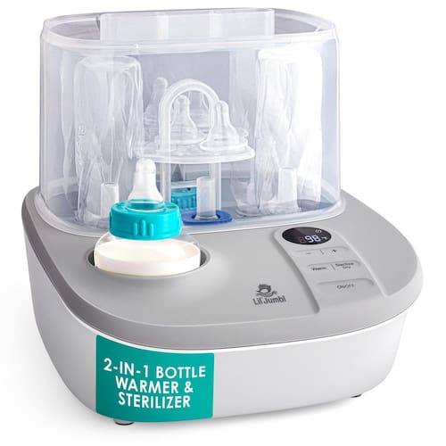 Um item essencial para economizar espaço para os pais modernos. Mantenha seu bebê saudável e seguro com o aquecedor de mamadeira e esterilizador 2 em 1 da Lil Jumbl. Esta máquina multiuso realiza todos os deveres diversos, desde higienizar mamadeiras e chupetas até fórmula de aquecimento, descongelamento do leite materno e acessórios de limpeza de secagem. Esta unidade elétrica usa vapor natural de mamadeiras, brinquedos de dentição, utensílios e acessórios de bomba de leite. O modo de secagem entra em ação para concluir o trabalho com segurança. Os pais também desfrutam do máximo controle com os compartimentos adaptáveis do esterilizador, interface LCD intuitiva e temporizador multifuncional programável. É uma maravilha fumegante e de limpeza que permite que você se concentre na coisa mais importante da sua vida: a mais nova adição à sua família. Pronto para parar de se preocupar com a preparação da garrafa? Adicione um aquecedor e esterilizador Lil Jumbl 2 em 1 ao seu carrinho hoje! Conteúdo da embalagem: 1 aquecedor e esterilizador 2 em 1 Lil Jumbl Instruções fáceis de seguir. Uma maravilha multifuncional da paternidade moderna! Especificações e detalhes Quantidade: 1 Material: plástico, aço inoxidável. Fonte de alimentação: CA 120 V; 60 Hz Potência total: 900 W Opções de temporizador: 40, 50 ou 60 minutos Faixa de temperatura: 36,66 a 60 °C. Como usar: Siga as instruções simples para montar e preparar sua nova máquina. Organize os itens a serem esterilizados ou a garrafa a ser aquecida no respectivo compartimento. Selecione o ciclo desejado e as configurações Respire um suspiro de alívio enquanto você se concentra no cuidado e na recuperação. - Aquecedor de garrafa multifuncional | economize espaço no balcão da cozinha ou no berçário com o aquecedor e esterilizador 2 em 1 da Lil' Jumbl's | Esterilize e seque com segurança suas mamadeiras e acessórios a vapor, depois aqueça sua escolha de leite ou fórmula para alimentação sem desconforto, dia ou noite | Esta Marvel moderna até descongela leite materno congelado! - Esterilização eficiente e eficaz | Esta unidade versátil comporta até 6 mamadeiras de tamanho padrão | Inclui uma bandeja de acessórios para esterilizar acessórios de mamadeira, bicos de bomba de leite e outros itens essenciais | Esterilização a vapor natural - Operação digital supersimples | a interface elegante e moderna da máquina exibe claramente o tempo restante, a temperatura e a seleção do ciclo | Escolha entre aquecer, descongelar, esterilizar + secar ou secar apenas, com opções de secagem de 20, 40 e 60 minutos | o leite aquece em apenas 15 minutos e descongela em apenas 35, por Resultados fáceis de tirar as mãos - Use com vários tipos de garrafa | Este aquecedor e esterilizador é seguro para usar com garrafas feitas de plástico PP, vidro e silicone sem manchar, deformar ou descolorir a superfície | Compatível com tamanhos de garrafa de 100 a 200 ml | para itens pequenos como chupetas, utensílios, recipientes, acessórios de bomba, bicos, e Mais - Ótimo para pais iniciantes | Tire uma carga de mães e pais novatos com este aparelho multifuncional de desligamento automático | Chega de lutar com o aquecimento da placa de fogão, dilemas de micro-ondas ou aquecedores a vapor pesados | Este dispositivo carrega e começa a funcionar em minutos, para que você possa se concentrar em seu novo pacote de alegria