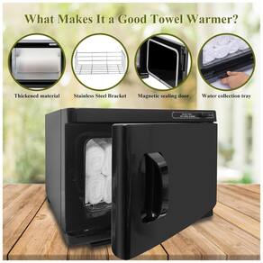 O aquecedor pode acomodar até 68 toalhas comuns de 71 x 38 cm ou até 12 a 14 toalhas faciais de 30 x 30 cm. No entanto, não é recomendado para armazenamento de toalhas de banho. O material interno é feito de aço inoxidável, e o equipamento conta com um coletor de gotas de água, sendo à prova d'água e resistente ao calor.