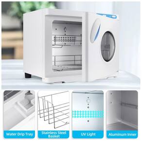 Aquecedor de toalhas quentes 2 em 1SOMENTE TOALHAS MOLHADAS A luz dentro do tanque para aquecimento e limpeza de toalhas faciais também pode ser usada para toalhas de banho, roupas íntimas, ferramentas para unhas, pedras de massagem e outras ferramentas de beleza, ideais para casa, spa, banheiro, salões de beleza, hotel, restaurante e cozinha. e confiável Aquecedor de toalhas com certificação EPA e CE para tratamentos faciais, é para uso diário. Bandeja removível embaixo para coletar a água gerada durante o processo de aquecimento da toalha e fácil de limpar. Apresenta uma janela de vidro transparente na porta para que você possa ver quantas toalhas há na unidade. Construção durávelDesign com câmara de alumínio aprimorada para melhor condução de calor, aquece completa e uniformemente as toalhas tradicionais e descartáveis, com controle de temperatura interno para evitar superaquecimento e fornecer calor padrão às toalhas. Prateleira de toalha de aço inoxidável para resistência à ferrugem e fácil de limpar. Poderoso sistema de aquecimentoVocê só precisa conectá lo à energia de 110V, colocar as toalhas molhadas e fechar a porta ligeiramente e pressionar o botão LIGAR, DESLIGAR e UV, a máquina de toalhas quentes pode ser aquecida rapidamente e uniformemente para aumentar média de 65 a 70 C. Em geral, aqueça por mais de meia hora. Se colocar muitas toalhas, aqueça por mais de 1 hora. Gabinete grande para aquecedor de toalhasEste aquecedor de toalhas de spa tem uma grande capacidade de 23 litros com rack de 2 camadas que pode zenar cerca de 50 60 peças de toalhas de tamanho normal. Com tamanho de 45 centímetros x 29 centímetros x 35 centímetros comprimento x largura x altura, é mais prático e eficiente e vai economizar mais tempo Marca: Não Informado