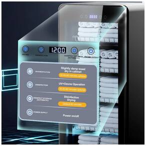 Sua operação é simples e eficiente, com um painel de toque intuitivo e um interruptor de 4 botões, complementado por botões de toque e um elegante display LED. Este modelo versátil vai além do aquecimento de toalhas, sendo ideal para salões de cabeleireiro, spas, estúdios de ioga, hotéis e residências, com capacidade para até 120 toalhas de rosto. É a escolha perfeita para quem busca eficiência e estilo em um único equipamento.