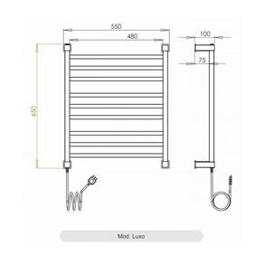 Dimenssões: 55 x 65 x 10 cm (larg. X alt. X prof.) Material: Inox 304 Polido Potência: 90W Nº de barras: 9 barras retas quadradas Consumo: 0,090 KW/h Temperatura: 35°C acima da temperatura ambiente - Máx: 70 a 75°C Tempo aquecimento: 15 minutos para chegar na temperatura ideal de uso Tensão: 220v Tamanho do cabo: 1 metro Posição do cabo elétrico: Direita na parte inferior do toalheiro olhando ele de frente Garantia: 5 anos no acabamento e 3 anos na parte elétrica