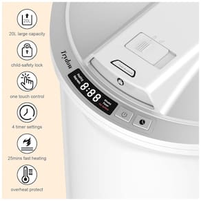 Controle Fácil com Um Botão: Com um modo de operação simples de um botão, defina o tempo de aquecimento desejado (30 minutos, 1 hora, 2 horas, 4 horas) com facilidade. O design de tampa flip-top facilita o uso e mantém seu espaço elegante e organizado. O display digital mostra o tempo restante de forma clara.