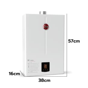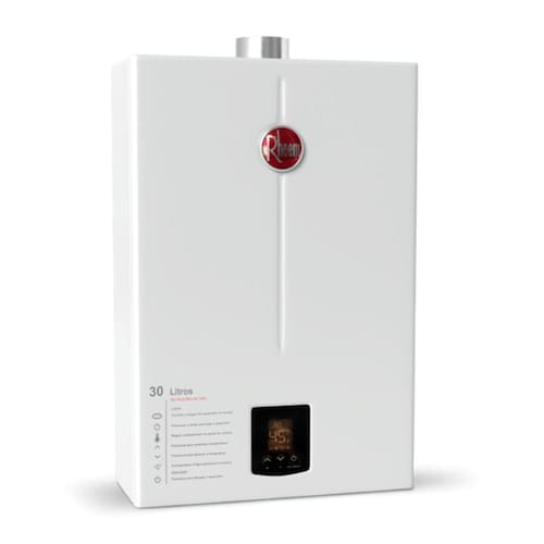 Aquecedor de passagem a gás digital 30l rheem - eficiência e conforto no seu banhodesfrute de banhos relaxantes e água quente em toda a sua casa com o aquecedor de passagem a gás rheem. Este modelo de 30 litros/min é ideal para atender às necessidades de até 3 duchas ou 2 duchas e 2 torneiras simultaneamente.Principais características:- chama modulante: garante um aquecimento preciso e eficiente.- sistema de restart: reinicia automaticamente em caso de queda de energia.- controle de fluxo: ajusta a quantidade de água conforme a demanda e a estação do ano.- trocador de calor: contribui para maior durabilidade e eficiência.- alta segurança: equipado com 8 sistemas de segurança integrados.- funcionalidade solar: integra-se facilmente a sistemas de aquecimento solar.- fácil instalação: bivolt automático 110220v e compatível com gás glp.- controle digital touchscreen: permite ajustar a temperatura de 38º até 65º com precisão.Especificações técnicas:- faixa de temperatura: 3865- vazão de água: 30 litros/min- tipo de gás: glp- display digital touchscreen- pressão de operação mínima: 2 mca- pressão de operação máxima: 100 mca- duto de exaustão e chaminé: 100mm- voltagem: bivolt 220/127 v - consumo máximo de gás: 3,59 kg/h- peso líquido: 13,5 kg- potência nominal: 42.570 kcal/h, 49,5 kwconteúdo da embalagem:1 aquecedor de água a gás rheem 30l glp rb3ap30pvpticaplicação e porquê escolher este modelo:- ideal para uso residencial e predial, seguindo as normas adequadas.- oferece alto rendimento e durabilidade, garantindo água quente em todas as ocasiões.Observação importante:este modelo é indicado exclusivamente para instalações residenciais. Certifique-se de contar com um profissional qualificado para a instalação adequada do aquecedor.