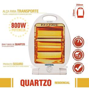 mais conforto para você e sua família. Para deixar sua residência mais quente e aconchegante, o aquecedor quartzo ventisol é ideal. Seguro e portátil, pode ser utilizado em qualquer ambiente da casa, dando aquela sensação de calor nos dias mais frios. Ideal para residências: ambiente mais quente e aconchegante para sua casa. Produto seguro: com grade de segurança e dispositivo contra quedas. Dois tubos de quartzo: com duas opções de potência. Fácil transporte: com alça para transporte.