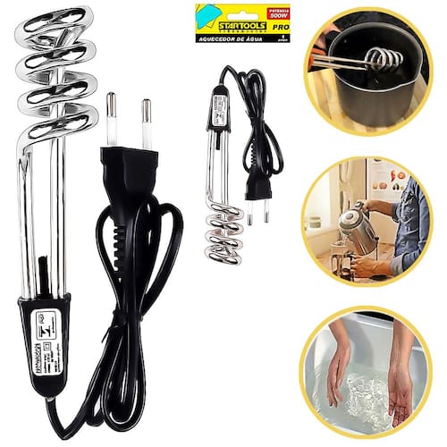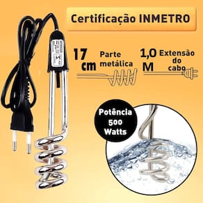 Composição: Plástico e ferro Dimensões: Aprox. 16?cm (comprimento) x 4?cm (largura) Potência: 500?W Conteúdo da embalagem: 01 Ebulidor Elétrico Ferve Água