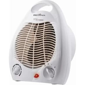 Especificações Marca: Britânia Modelo: AB1100N Cor: Branco Material: Plástico e metal Consumo kW/h : 1,5 Potência watts : 1500 Com luz de funcionamento: Sim Cor da luz de funcionamento: Vermelha Comprimento do cordão elétrico: 1,40 m Medidas axlxp : 24 x 21 x 12 cm Peso: 900 g Garantia: 1 ano