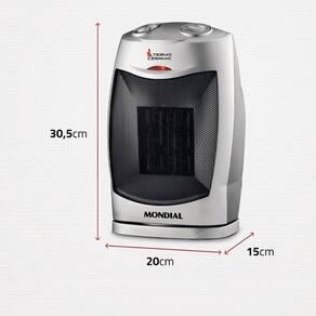 Características: Potência: 1500W Consumo de energia: 1,5Kw/h Comprimento do cabo: 1m 2 Níveis de aquecimento Resistencia de cerâmica Aquecimento com baixo ruido Desligamento automático Grade de segurança Com alça para transporte Luz Indicadora Inmetro: BRA23/00339